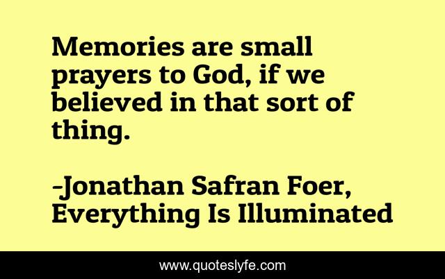 "Jonathan Safran Foer, Everything Is Illuminated Quotes." Quoteslyfe.com, 2025. Sat. 06 Dec. 2025. <https://www.quoteslyfe.com/quote/Memories-are-small-prayers-to-God-if-132712>.