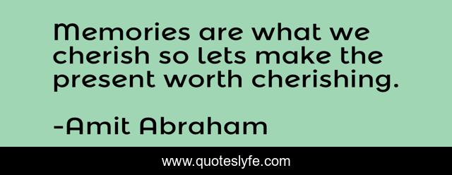 This page presents the quote "Memories are what we cherish so lets make the present worth cherishing.". Author of this quote is Amit Abraham. This quote is about memories, cherishing, present-moment,.