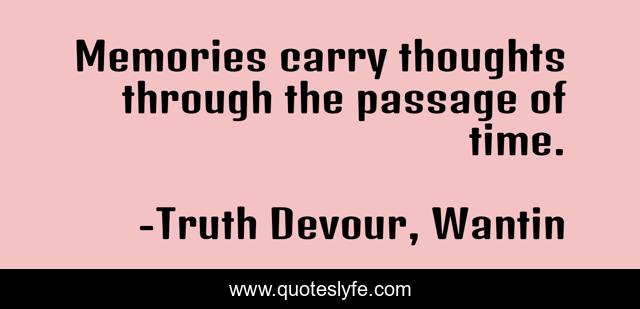 "Truth Devour, Wantin Quotes." Quoteslyfe.com, 2025. Mon. 08 Dec. 2025. <https://www.quoteslyfe.com/quote/Memories-carry-thoughts-through-the-passage-of-110758>.