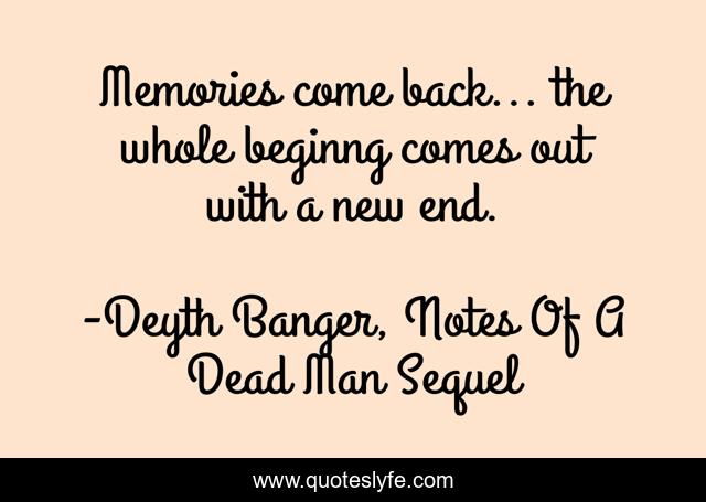 This page presents the quote "Memories come back... the whole beginng comes out with a new end.". Author of this quote is Deyth Banger, Notes Of A Dead Man Sequel. This quote is about me, try, lets, make, play,.