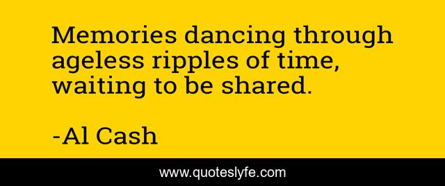 This page presents the quote "Memories dancing through ageless ripples of time, waiting to be shared.". Author of this quote is Al Cash. This quote is about memories, memory, share, time,.