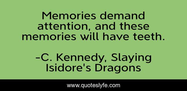 "C. Kennedy, Slaying Isidore's Dragons Quotes." Quoteslyfe.com, 2025. Fri. 05 Dec. 2025. <https://www.quoteslyfe.com/quote/Memories-demand-attention-and-these-memories-will-103701>.