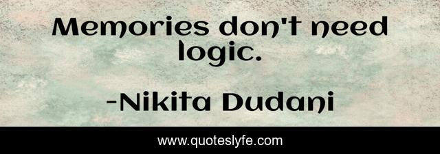This page presents the quote "Memories don't need logic.". Author of this quote is Nikita Dudani. This quote is about memories, logical-thinking, nikitadudani,.