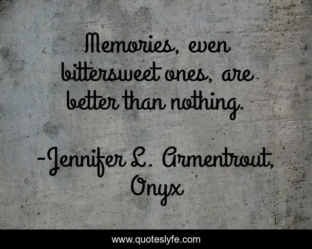 "Jennifer L. Armentrout, Onyx Quotes." Quoteslyfe.com, 2025. Fri. 05 Dec. 2025. <https://www.quoteslyfe.com/quote/Memories-even-bittersweet-ones-are-better-than-164265>.