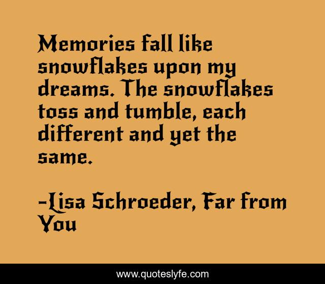 "Lisa Schroeder, Far from You Quotes." Quoteslyfe.com, 2025. Fri. 05 Dec. 2025. <https://www.quoteslyfe.com/quote/Memories-fall-like-snowflakes-upon-my-dreams-164324>.