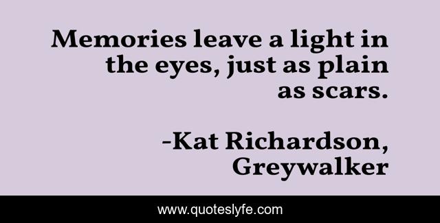 This page presents the quote "Memories leave a light in the eyes, just as plain as scars.". Author of this quote is Kat Richardson, Greywalker. This quote is about memories, scars,.