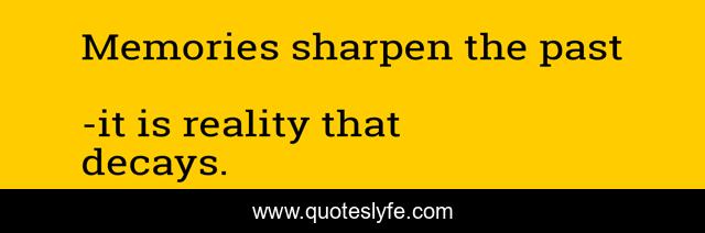 "it is reality that decays. Quotes." Quoteslyfe.com, 2025. Mon. 08 Dec. 2025. <https://www.quoteslyfe.com/quote/Memories-sharpen-the-past-93746>.