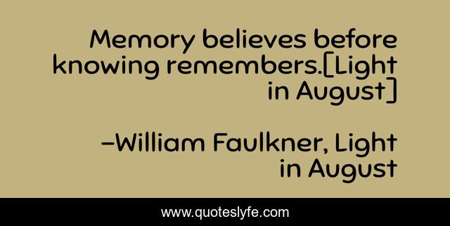 "William Faulkner, Light in August Quotes." Quoteslyfe.com, 2025. Fri. 05 Dec. 2025. <https://www.quoteslyfe.com/quote/Memory-believes-before-knowing-remembers-Light-in-132695>.