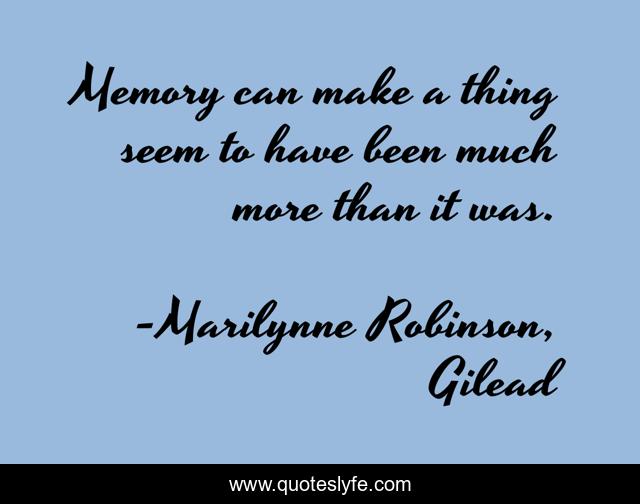 "Marilynne Robinson, Gilead Quotes." Quoteslyfe.com, 2025. Fri. 05 Dec. 2025. <https://www.quoteslyfe.com/quote/Memory-can-make-a-thing-seem-to-2959>.