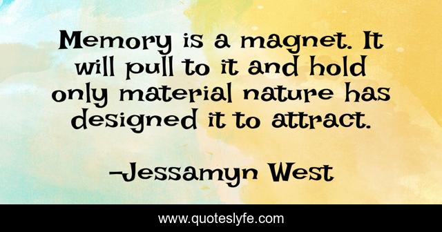 This page presents the quote "Memory is a magnet. It will pull to it and hold only material nature has designed it to attract.". Author of this quote is Jessamyn West. This quote is about hold, memory,.