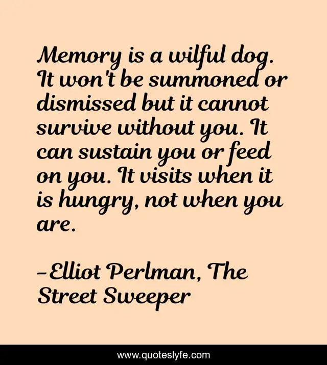 "Elliot Perlman, The Street Sweeper Quotes." Quoteslyfe.com, 2025. Fri. 05 Dec. 2025. <https://www.quoteslyfe.com/quote/Memory-is-a-wilful-dog-It-won-132965>.