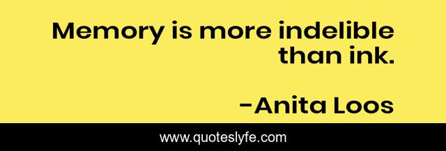 This page presents the quote "Memory is more indelible than ink.". Author of this quote is Anita Loos. This quote is about ink, memory,.