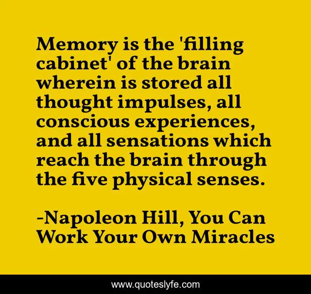 "Napoleon Hill, You Can Work Your Own Miracles Quotes." Quoteslyfe.com, 2025. Sun. 07 Dec. 2025. <https://www.quoteslyfe.com/quote/Memory-is-the-filling-cabinet-of-the-133205>.