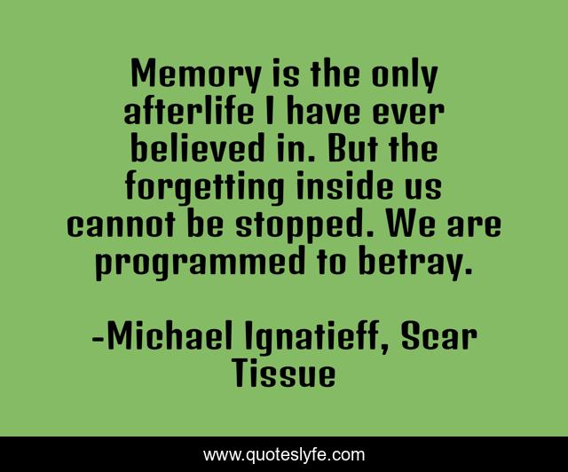 "Michael Ignatieff, Scar Tissue Quotes." Quoteslyfe.com, 2025. Sat. 13 Dec. 2025. <https://www.quoteslyfe.com/quote/Memory-is-the-only-afterlife-I-have-132736>.