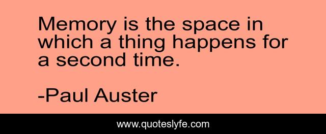This page presents the quote "Memory is the space in which a thing happens for a second time.". Author of this quote is Paul Auster. .