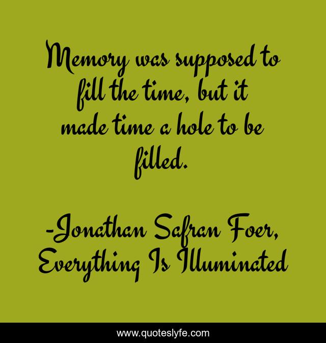 This page presents the quote "Memory was supposed to fill the time, but it made time a hole to be filled.". Author of this quote is Jonathan Safran Foer, Everything Is Illuminated. .