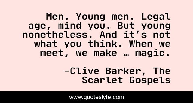 "Clive Barker, The Scarlet Gospels Quotes." Quoteslyfe.com, 2025. Sat. 06 Dec. 2025. <https://www.quoteslyfe.com/quote/Men-Young-men-Legal-age-mind-you-127534>.