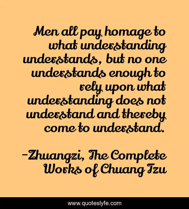 "Zhuangzi, The Complete Works of Chuang Tzu Quotes." Quoteslyfe.com, 2025. Mon. 08 Dec. 2025. <https://www.quoteslyfe.com/quote/Men-all-pay-homage-to-what-understanding-156832>.