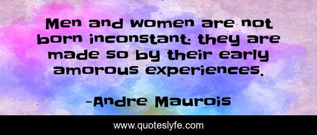 This page presents the quote "Men and women are not born inconstant: they are made so by their early amorous experiences.". Author of this quote is Andre Maurois. This quote is about born, men, relationship,.