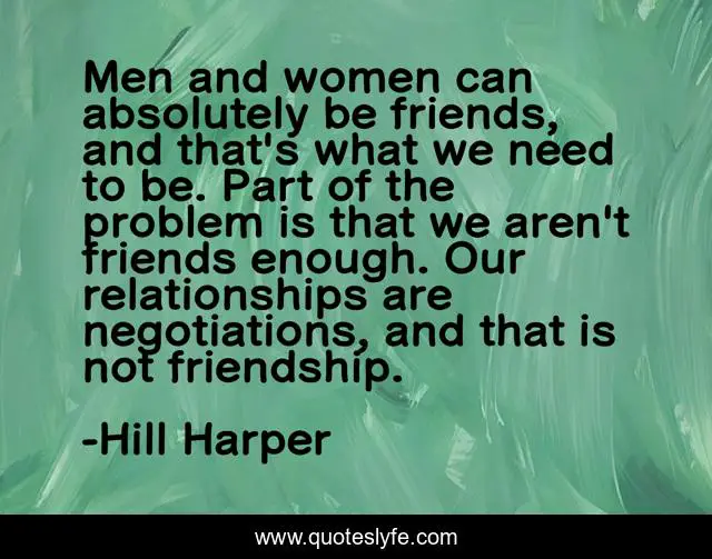"Hill Harper Quotes." Quoteslyfe.com, 2025. Sun. 07 Dec. 2025. <https://www.quoteslyfe.com/quote/Men-and-women-can-absolutely-be-friends-318949>.