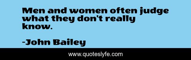 This page presents the quote "Men and women often judge what they don't really know.". Author of this quote is John Bailey. .
