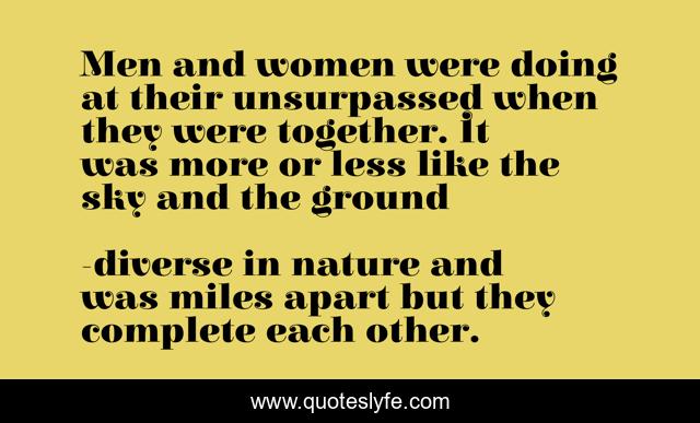 "diverse in nature and was miles apart but they complete each other. Quotes." Quoteslyfe.com, 2025. Sun. 07 Dec. 2025. <https://www.quoteslyfe.com/quote/Men-and-women-were-doing-at-their-171826>.