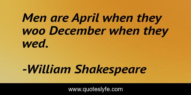 This page presents the quote "Men are April when they woo December when they wed.". Author of this quote is William Shakespeare. .