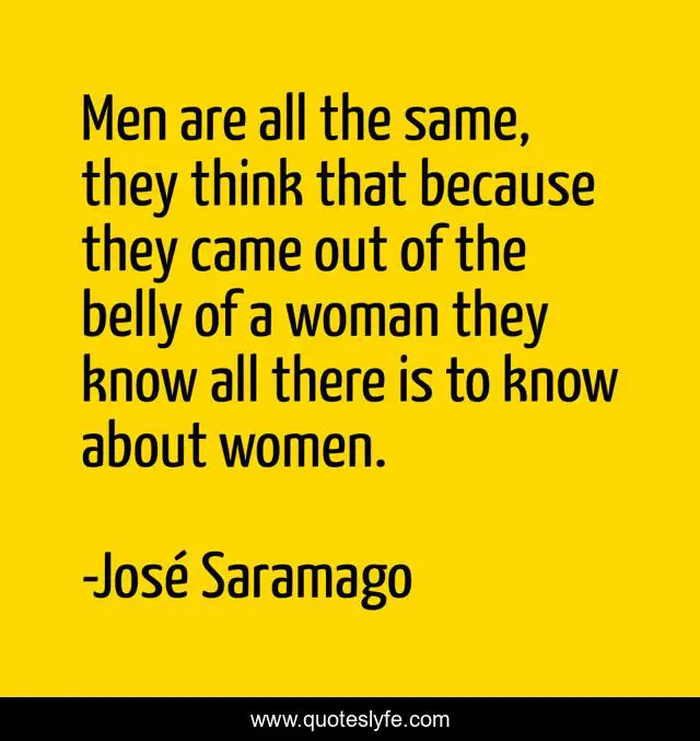 This page presents the quote "Men are all the same, they think that because they came out of the belly of a woman they know all there is to know about women.". Author of this quote is José Saramago. .