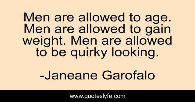 This page presents the quote "Men are allowed to age. Men are allowed to gain weight. Men are allowed to be quirky looking.". Author of this quote is Janeane Garofalo. This quote is about looking, quirky, men,.
