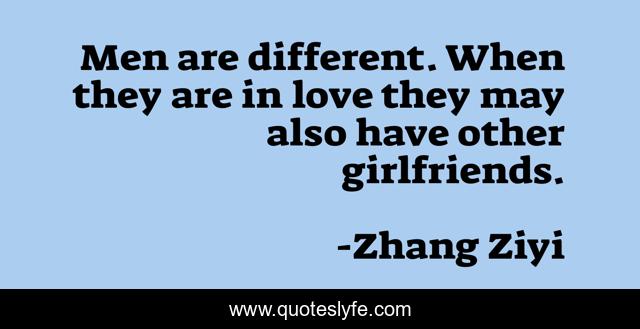 This page presents the quote "Men are different. When they are in love they may also have other girlfriends.". Author of this quote is Zhang Ziyi. This quote is about may, different, love, affection,.
