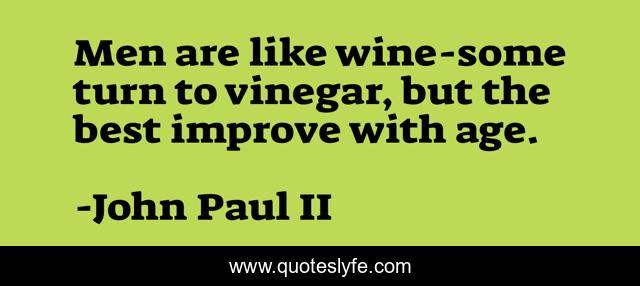 This page presents the quote "Men are like wine-some turn to vinegar, but the best improve with age.". Author of this quote is John Paul II. This quote is about aging, men, wine,.