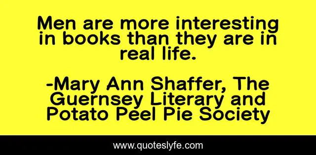 "Mary Ann Shaffer, The Guernsey Literary and Potato Peel Pie Society Quotes." Quoteslyfe.com, 2025. Fri. 05 Dec. 2025. <https://www.quoteslyfe.com/quote/Men-are-more-interesting-in-books-than-6057>.