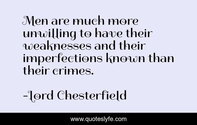 This page presents the quote "Men are much more unwilling to have their weaknesses and their imperfections known than their crimes.". Author of this quote is Lord Chesterfield. This quote is about celebrities, fame,.