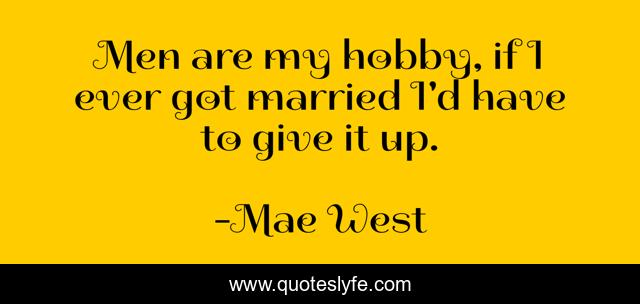This page presents the quote "Men are my hobby, if I ever got married I'd have to give it up.". Author of this quote is Mae West. This quote is about naughty, marriage, risque,.