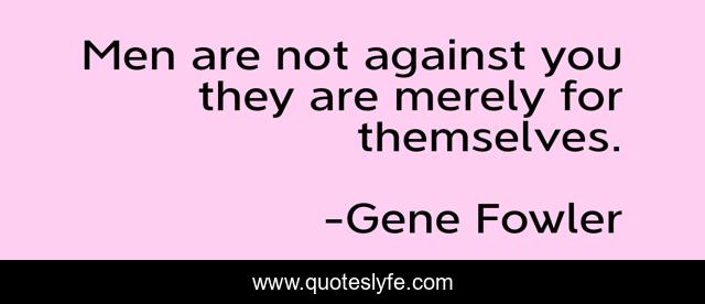 This page presents the quote "Men are not against you they are merely for themselves.". Author of this quote is Gene Fowler. This quote is about themselves, against,.