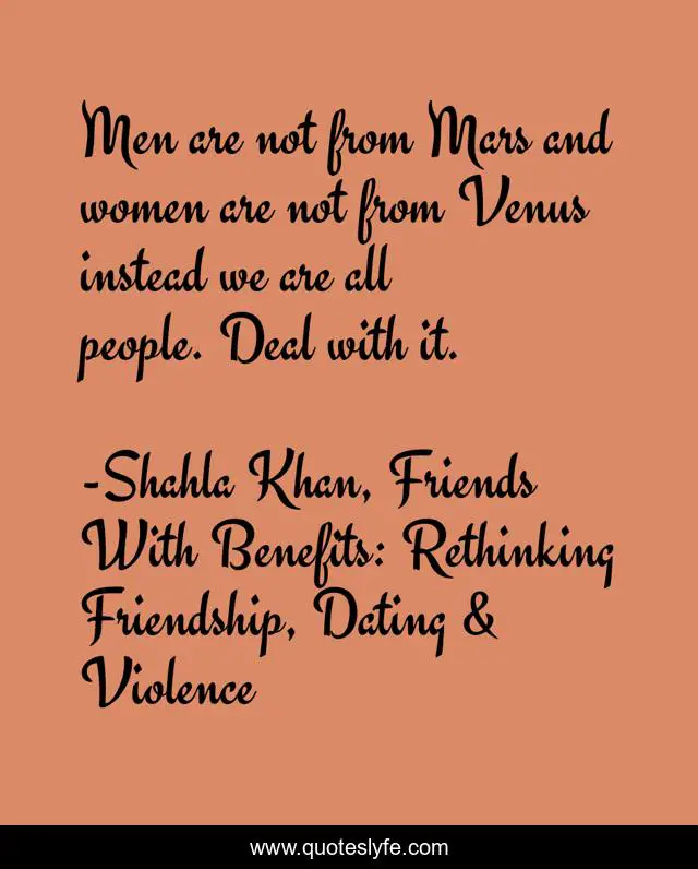 "Shahla Khan, Friends With Benefits: Rethinking Friendship, Dating & Violence Quotes." Quoteslyfe.com, 2025. Fri. 05 Dec. 2025. <https://www.quoteslyfe.com/quote/Men-are-not-from-Mars-and-women-102058>.