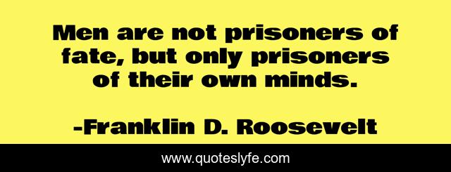 This page presents the quote "Men are not prisoners of fate, but only prisoners of their own minds.". Author of this quote is Franklin D. Roosevelt. This quote is about own, fate, minds,.