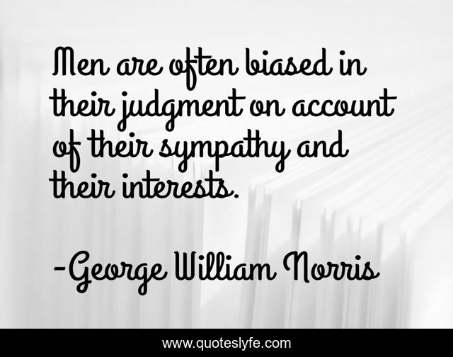 This page presents the quote "Men are often biased in their judgment on account of their sympathy and their interests.". Author of this quote is George William Norris. This quote is about interests, men, judgment,.