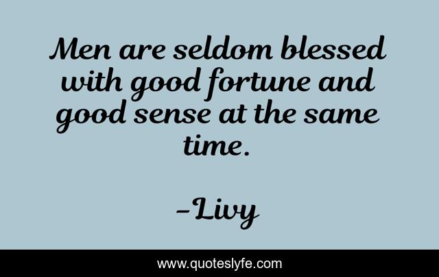This page presents the quote "Men are seldom blessed with good fortune and good sense at the same time.". Author of this quote is Livy. .