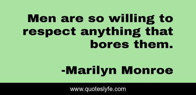 This page presents the quote "Men are so willing to respect anything that bores them.". Author of this quote is Marilyn Monroe. This quote is about willing, anything, men,.