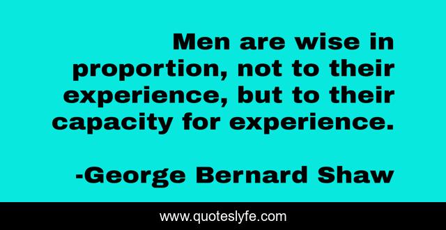 This page presents the quote "Men are wise in proportion, not to their experience, but to their capacity for experience.". Author of this quote is George Bernard Shaw. .