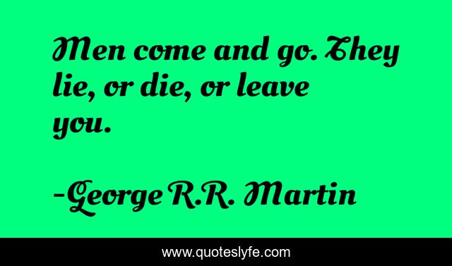 This page presents the quote "Men come and go. They lie, or die, or leave you.". Author of this quote is George R.R. Martin. This quote is about men, love, life-lessons, affection,.
