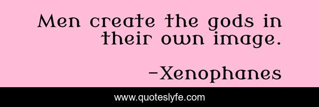 This page presents the quote "Men create the gods in their own image.". Author of this quote is Xenophanes. This quote is about gods, create, image,.