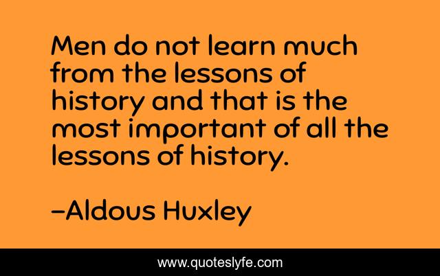 This page presents the quote "Men do not learn much from the lessons of history and that is the most important of all the lessons of history.". Author of this quote is Aldous Huxley. This quote is about men, important, learn,.