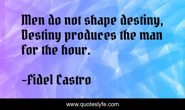 This page presents the quote "Men do not shape destiny, Destiny produces the man for the hour.". Author of this quote is Fidel Castro. This quote is about shape, destiny, man,.