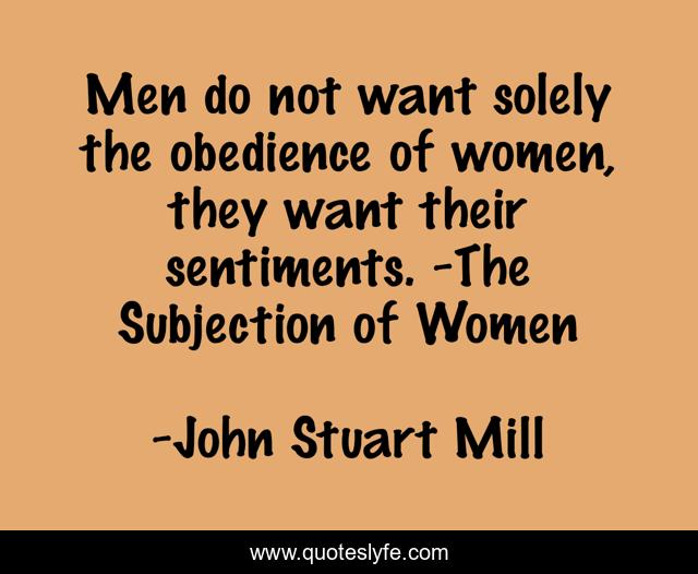 This page presents the quote "Men do not want solely the obedience of women, they want their sentiments. -The Subjection of Women". Author of this quote is John Stuart Mill. .