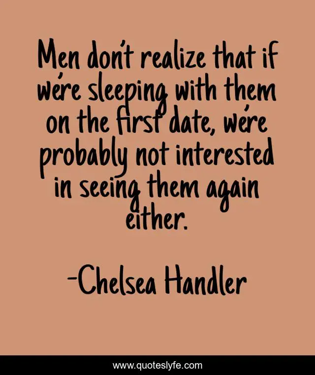 This page presents the quote "Men don’t realize that if we’re sleeping with them on the first date, we’re probably not interested in seeing them again either.". Author of this quote is Chelsea Handler. .