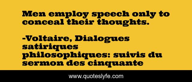 "Voltaire, Dialogues satiriques philosophiques: suivis du sermon des cinquante Quotes." Quoteslyfe.com, 2025. Sat. 06 Dec. 2025. <https://www.quoteslyfe.com/quote/Men-employ-speech-only-to-conceal-their-137726>.