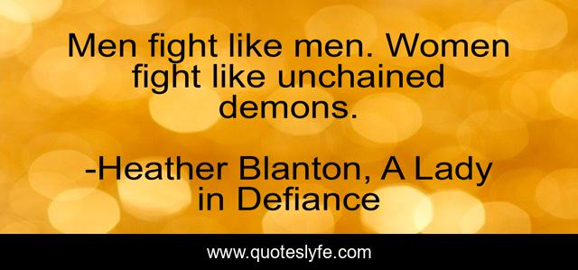 "Heather Blanton, A Lady in Defiance Quotes." Quoteslyfe.com, 2025. Sun. 07 Dec. 2025. <https://www.quoteslyfe.com/quote/Men-fight-like-men-Women-fight-like-217244>.