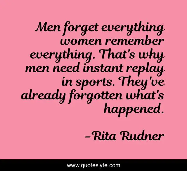 "Rita Rudner Quotes." Quoteslyfe.com, 2025. Tue. 09 Dec. 2025. <https://www.quoteslyfe.com/quote/Men-forget-everything-women-remember-everything-That-40659>.